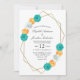 Orange ranunculus, white rose and teal floral wedding design on a geometric frame