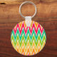Orange Teal Ikat Chevron Zig Zag Stripes Pattern Key Ring