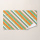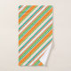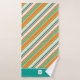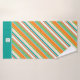 Bright diagonal stripes of orange, green, and teal blue contrast with white to give this three piece bath towel set a unique pattern. Matching dots give more interest to the pattern. The bath towel also has a solid teal bottom border with your monogram on an ornate white banner. Colourful! Be sure to see the matching products in our store. *Clip art used in this design is copyrighted by Encore Software, Inc., which permits use to its licensors. All rights reserved.