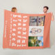 Stylish and a fun way to keep memories alive. This is a cute Orange Thankful Grateful Blessed Family Photo Thanksgiving fleece blanket features three pictures that can be changed to your own personal family photos. The white typopgraphy "The Andersons" can be changed to fit your family surname or first names.
