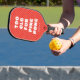 A subtle pattern of red dots on an orange background with funny, white, text that reads "too old for ping pong" with personalised name text below it make this pickle ball paddle a fun gift for anyone that loves the game but knows their limits when it comes to speed and hand-eye coordination.