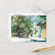 A fine art postcard with the watercolor painting by Winslow Homer, an American artist from the realism movement, Orange Tree and Gate (1885) also known as Orange Tree, Nassau. A tropical landscape with a fruit tree near a white garden gate in the Bahamas on a sunny day.