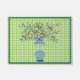 My painting of an Orange Tree in a Blue and White Ginger Jar Pot. Background is a grass green trellis or gingham.