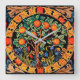 ORANGE TREE WITH GREEN LEAVES,FLOWERS SQUARE WALL CLOCK