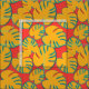 Eye-catching vibrant orange fabric featuring bold tropical leaves.