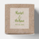 Bunches of orange tulips surround a kraft paper patterned 2" square party favor box. Personalize the front and the top with your wording or delete it. Click CUSTOMIZE button to CHANGE the fonts and font colors. COORDINATING items available in our store. Wedding invitations, RSVP Cards, Reception Cards, Thank You Notes and more. See the entire collection at ---> http://bit.ly/2LGtAf0 <---