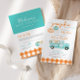 Watercolor A Little Pumpkin Orange & turquoise Pumpkin Harvest Truck, Fall Pumpkin Patch Baby Shower with Orange Gingham pattern with diaper raffle and books for baby on back of invitation