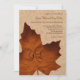 On a burlap coloured background, a large, monogrammed maple leaf accents this floral damask invitation, for the vintage wedding. It is shown on the basic paper; however, I recommend the weight and texture of the linen paper.