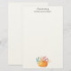 Personalised stationery with a watercolor illustration of an orange pumpkin decorated with colourful fall leaves and sprigs.