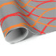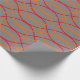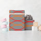 This wrapping paper has a Boho design of orange and red waves on a field of grey.
