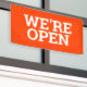 Let the World Know Your Business is Now Open! Capture attention with our eye catching 'We're Open' banner sign. Tailor a unique message using customisable text. Adjust colours in the design to align with your brand's identity.