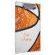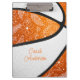 This fun basketball themed clipboard features the realistic image of an abstractly oversized orange & white basketball that has delicate hand-drawn doodle flowers, feathers and paisleys patterned on the basketball's orange panels - customise with the coach's or athlete's name - by katz_d_zynes