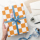 Trendy orange and white chequered/chequerboard pattern gift wrapping paper.