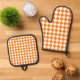 Orange White Chequered Diamond Pattern Oven Mitt & Pot Holder Set