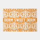 Our dorm door mat adorned with a orange and white pattern and your text in school type lettering. View our full line of custom home products in our Zazzle store.