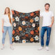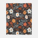 Orange White Flowers Black Fleece Blanket