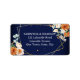 Orange and white roses sage eucalyptus greenery navy blue background gold geometrical frame return address labels.