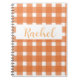 Beautiful Orange and White Gingham Pattern Personalised Notebook, is a classic design that contains a chequered look or buffalo plaid, gorgeous colourful design. Buy Today!