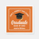 This modern orange and white custom graduation party paper napkin features classy typography of your high school or college name for the class of 2025. Customise with your graduating year under the chic handwritten script and black grad cap for great personalised graduate decor.