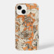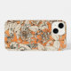 This is a graphic pattern of white vintage garden flowers on an orange background.