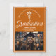 This orange custom medical school graduation party invitation for a nurse or doctor features classy white typography under a medical caduceus and your college name for the class of 2025. Customise with your graduating year under the elegant calligraphy for a great personalised university graduate card.
