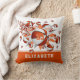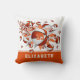 This cool girl's basketball throw pillow features an "explosion" of orange and white basketballs in varying sizes and grey and orange star shapes, upon which you can personalise her jersey number - the orange star has a tiny pattern of white polka dots - customise the athlete's name on an orange colour strip at the bottom edge of the pillow - katz_d_zynes