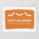 Trendy and fun Watercolor Bats Halloween Postcard with an orange watercolor look background and three whimsical little white bats. This simple and modern card can be easily customised with your own Halloween greeting. Find more customisation options by clicking Customise It.