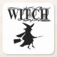 Orange Wicked Flying Witch Halloween Square Paper Coaster
