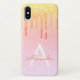 Orange, Yellow and Gold Bling Ombre Sparkle and Faux Dripping Glitter Girly Modern Monogram First Name and Initial Smart Phone Case. Please contact the designer for matching items