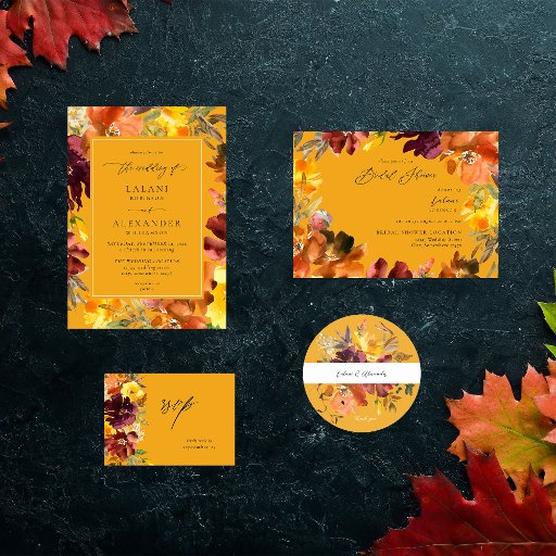 Orange & Yellow Gold Fall Floral Invitations 2Designed by M B