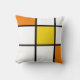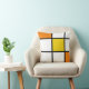Get ready for Summer with this indoor outdoor pillow featuring a simple geometric Mondrian style pattern with bold orange and yellow squares and black accents. This design is minimalistic and modern, and it will complement any style of decor.