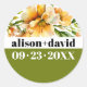 Orange yellow rhododendron bold typography wedding classic round sticker