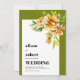 Rhododendron branch with orange, yellow flowers fall wedding Invitation. This sophisticated wedding invitation showcases a minimalist white frame adorned with orange, yellow rhododendron blooms, accented by delicate olive green foliage nestled in the upper right corner. Soft olive green borders frame the design, enhancing its refined elegance, while clean, modern typography in bold strokes adds a sleek, contemporary edge. The reverse features a solid olive green backdrop that harmonizes with the front, creating a unified, stylish aesthetic.
