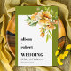 Orange, yellow rhododendron olive green wedding invitation
