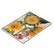Orange-yellow sunflowers painted at various angles, with one going to seed, an artistic idea for any flower lover gardener. > Gorgeous print of a sunflower watercolor painting by artist, Harriet Brock. > Customisable: Add your own custom name or text.