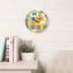 Orange Yellow Teal Blue Seafoam Retro Art Pattern Large Clock