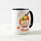 This fun mug features a cute little orange holding up a sign that reads 'Orange You Glad We're Friends' with a custom name option.