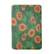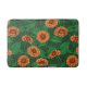 Orange Zinnia flowers, green leaves on dark green Bath Mat