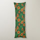 Orange Zinnia flowers, green leaves on dark green Body Cushion