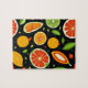 Colourful Cute Tropical Fruits Pattern Puzzle, Lemons, Oranges, Grapefruits and Green Leaves