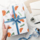 Beautiful bright pattern with orange slices and pine tee branches perfect for wrapping your Christmas holiday gifts