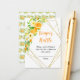 This fun and whimsical baby shower diaper raffle card features watercolor oranges, daisies and foliage on a gold geometric frame. The text combines handwritten script and serif fonts for a stylish and modern look. This is perfect for a summer rustic baby shower.