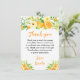 This beautiful and elegant thank you card features watercolor oranges, daisies and foliage. The text combines handwritten script and serif fonts for a stylish and modern look. This is perfect for a spring or summer rustic baby shower.