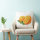 This gorgeous decorative pillow, featuring two whole oranges and one cut half orange with three orange leaves on a transparent background (white used in sample) or custom background colour, is the perfect accessory to cosy up any space and is great for adding colour to your kitchen or living room decor.