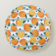 Oranges on striped seamless background. Summer fruit festive pattern. Raster illustration
