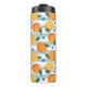 Oranges on striped seamless background. Summer fruit festive pattern. Raster illustration