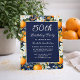 Oranges White Flowers Navy Blue 50th Birthday Invitation