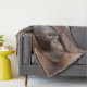 A quality printed throw has its advantages. This is a much finer weave throw than its loopier cousins, and though lighter, it is worth the investment for custom room accessorizing. The back is much prettier than the typical brown, and the fringe on the long sides very vivid, the selvage nicely done. Before photographing, I washed the throw in cold water, delicate, with a thicker woven throw the same size. On tumble dry low, this throw was dry in half the time as the other. This is a very practical quality if you use throws for furniture covers or to wrap up in frequently. The sleekness of the fabric makes it a great layer for accenting or protecting without the feeling of sitting on too much stuff. Perfect for napping or when you feel a light chill coming on. The color printing is beautiful and on this fabric, matched the design and color of my Photoshop image. This is an advantage for blending room fabrics and colors. The fringe on the short sides prints the colors from the design image and therefore varies from the side fringe. I streaked a white fractal line through the plaid pattern to give the illusion of weaving. This printed as crisp as an illusory thread, and put some white in the short side fringe, showing another advantage of print vs loomed- for artistic purposes, line lines, detail, and color integrity can be planned and preserved. My loomed throws have color limitations and more of a needlepoint texture. Print throws reproduce an exact image. The throw felt a little stiff straight out of the package, but this went away in the first delicate wash. Of course I searched the wash water for ink or bleeding and there was none.