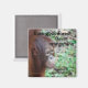 Hundreds of young orangutans ( like the little female pictured here) are orphaned when their mothers are killed during the clearing of rain forest land. See the IMAX movie "Born To Be Wild" (2011) The artist donates her profits from sales of this magnet to support the wildlife rescue work of Orangutan Foundation International. A version of this magnet was distributed at some of Dr. Birute Galdikas's speaking engagements in 2009. Dr. Galdikas is one of the three renowned primatologists sometimes referred to as "Leakey's Angels," along with Jane Goodall (chimpanzees) and the late Dian Fossey (mountain gorillas). It is predicted that the orangutans could be the first of the great apes to become extinct.