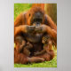 Orangutan mother and the two sweet babies in her arms. The baby on her right sucking on his hand.